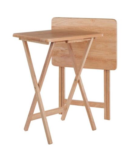 Make entertaining simple and easy with the Wood Alex 2-Piece Snack Tables. The classic rectangular shape of these snack tables with gently curved corners makes these tables simple but still very versatile. Perfect for small spaces, dorm room, kids’ room, an infinity of rooms these can be used in. These foldable tables open-up to X-frame bases which make these table not only look good but also help with stability. Tables easily open, for daily use and are compact enough to store in the closet. Constructed of solid wood that is finished in a clear lacquer to highlight the natural wood grain. Conveniently shipped in 1 box, ready to use as no assembly is needed.Individual Table dims (open) - 19.06"W x 14.57"D x 25.98"HIndividual Table dims (closed) - 19.06"W x 1.81"D x 28.98"HStatic Maximum Weight per Table - 25 lbs.Tables fully assembledShips in 1 box