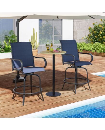 2 Pieces 360 Rotating Bar Stool Set with Armrests for Patio-Navy