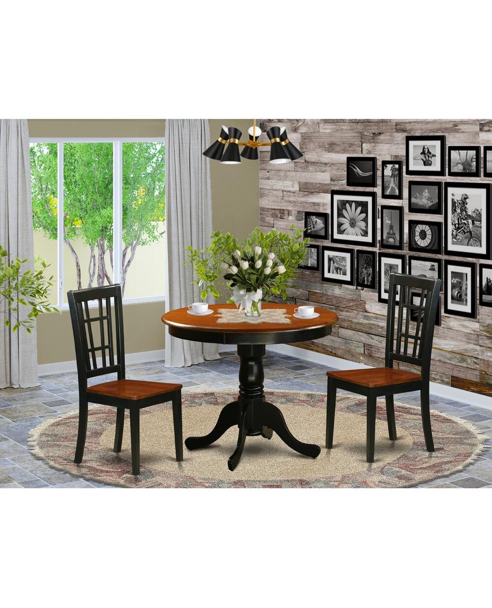 3 PC Dining Table with 2 Wood Chairs in Black and Cherry
