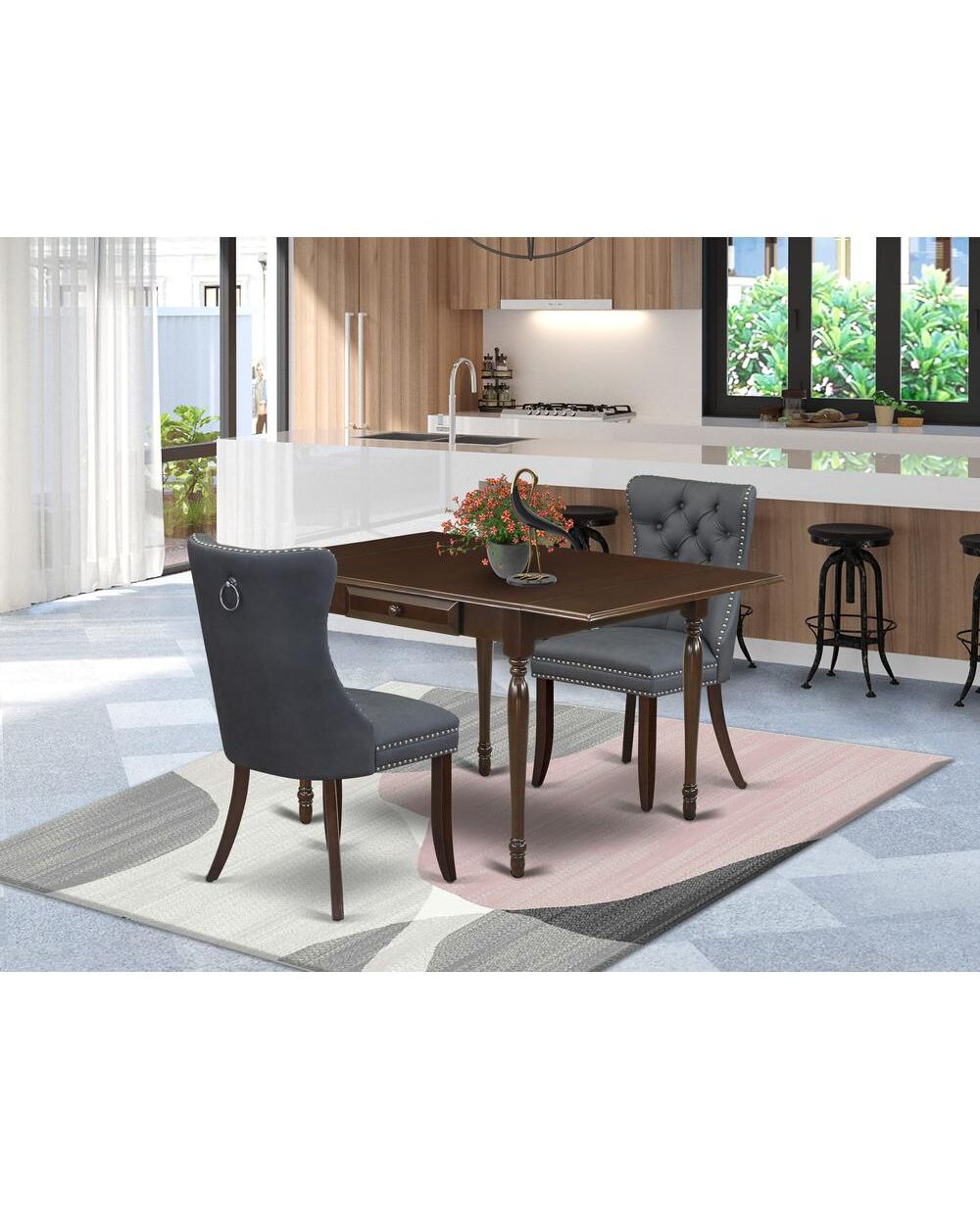 3 Piece Kitchen Table Set Consists of a Rectangle Dining Table with Dropleaf