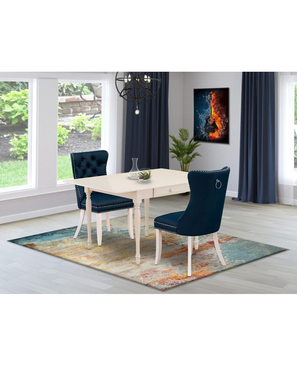 3 Piece Kitchen Table Set Consists of a Rectangle Dining Table with Dropleaf