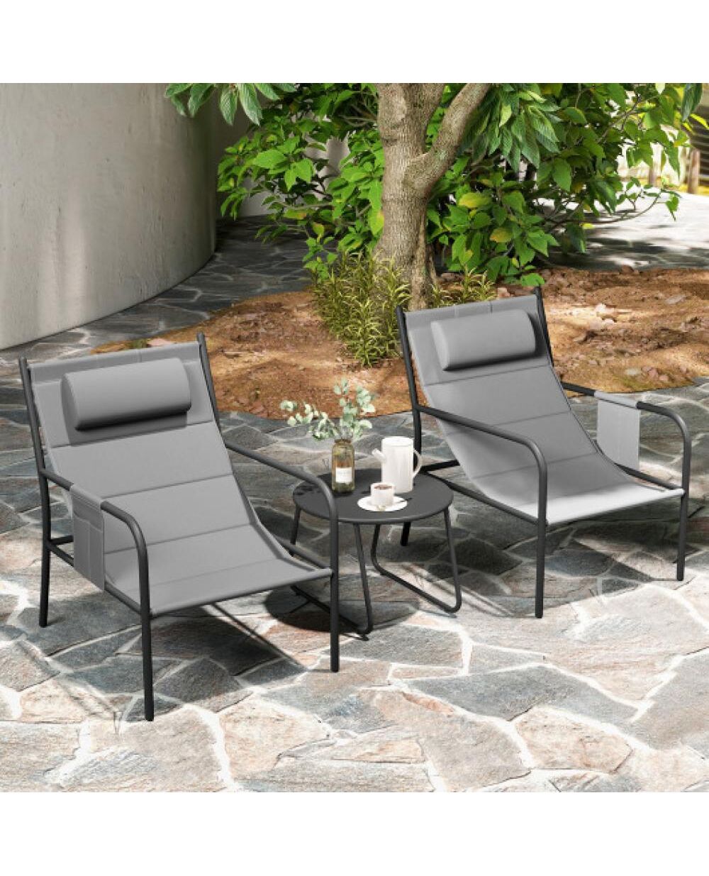 3 Piece Outdoor Bistro Set Patio Metal Chair and Coffee Table Set-Gray