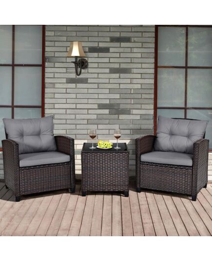 3 Pieces Rattan Patio Furniture Set with Washable Cushion-Gray