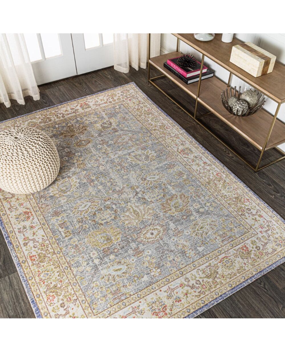 Inspired by antique Peshawar rug designs, this classic pattern has been updated with a modern, distressed-gray color palette. A center field of stylized flowers is framed by a floral border. This updated design is the perfect complement to a modern living room, bedroom or dining room.
