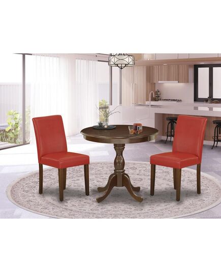 AMAB3-MAH-72 3 Piece Dining Table Set - 1 Kitchen Table and 2 Firebrick Red Dining Chairs - Mahogany Finish