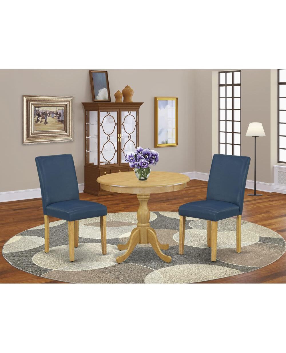 AMAB3-OAK-55 3 Piece Dining Table Set - 1 Wood Dining Table and 2 Oasis Blue Kitchen Chairs - Oak Finish