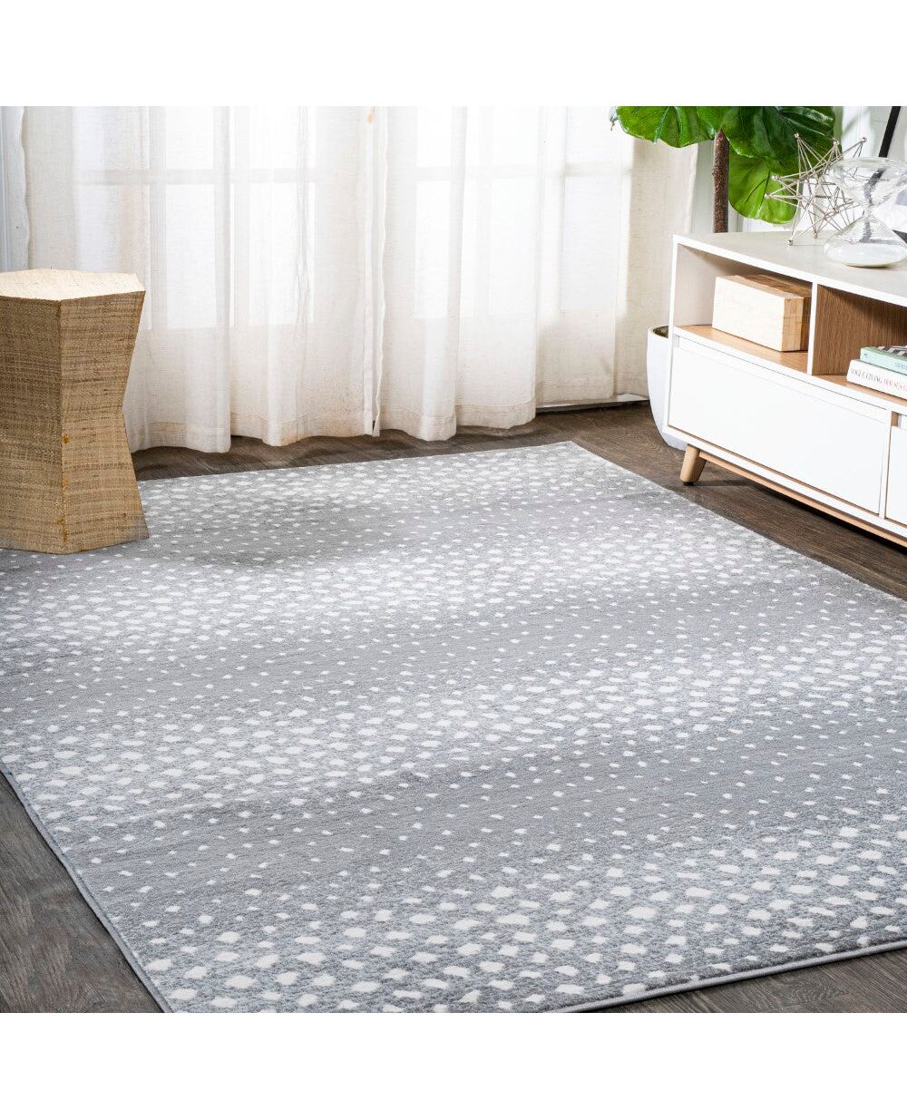 Animal print gets an update with this antelope pattern rug, woven in deep charcoal and ivory creates a modern, abstract black and white design on your floor. This pet-friendly rug's busy pattern makes it ideal for a living room, dining room, kitchen, bedroom, entry or office. It's the perfect centerpiece for a mid-century modern, contemporary, or traditional interior.