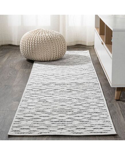 Inspired by vintage Moroccan tribal rugs, our modern version is power-loomed with a short pile. Rows of diamonds are woven in ivory on a neutral background. Add Bohemian style to your living room, dining room, entry or kitchen with this easy-care rug.