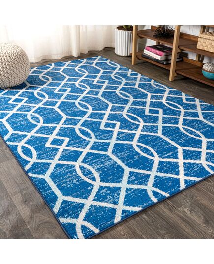 Our geometric trellis design is inspired by gray and white Moroccan tile patterns - the perfect complement to traditional, modern and coastal interiors. The ogee trellis in ivory is backed with mingled tones of blue to give this rug a vintage look. This family-friendly rug is ideal for the living room, kitchen, dining room, bedroom or entry.