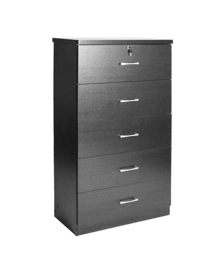 Better Home Products Olivia Wooden Tall 5 Drawer Chest Bedroom Dresser in Black