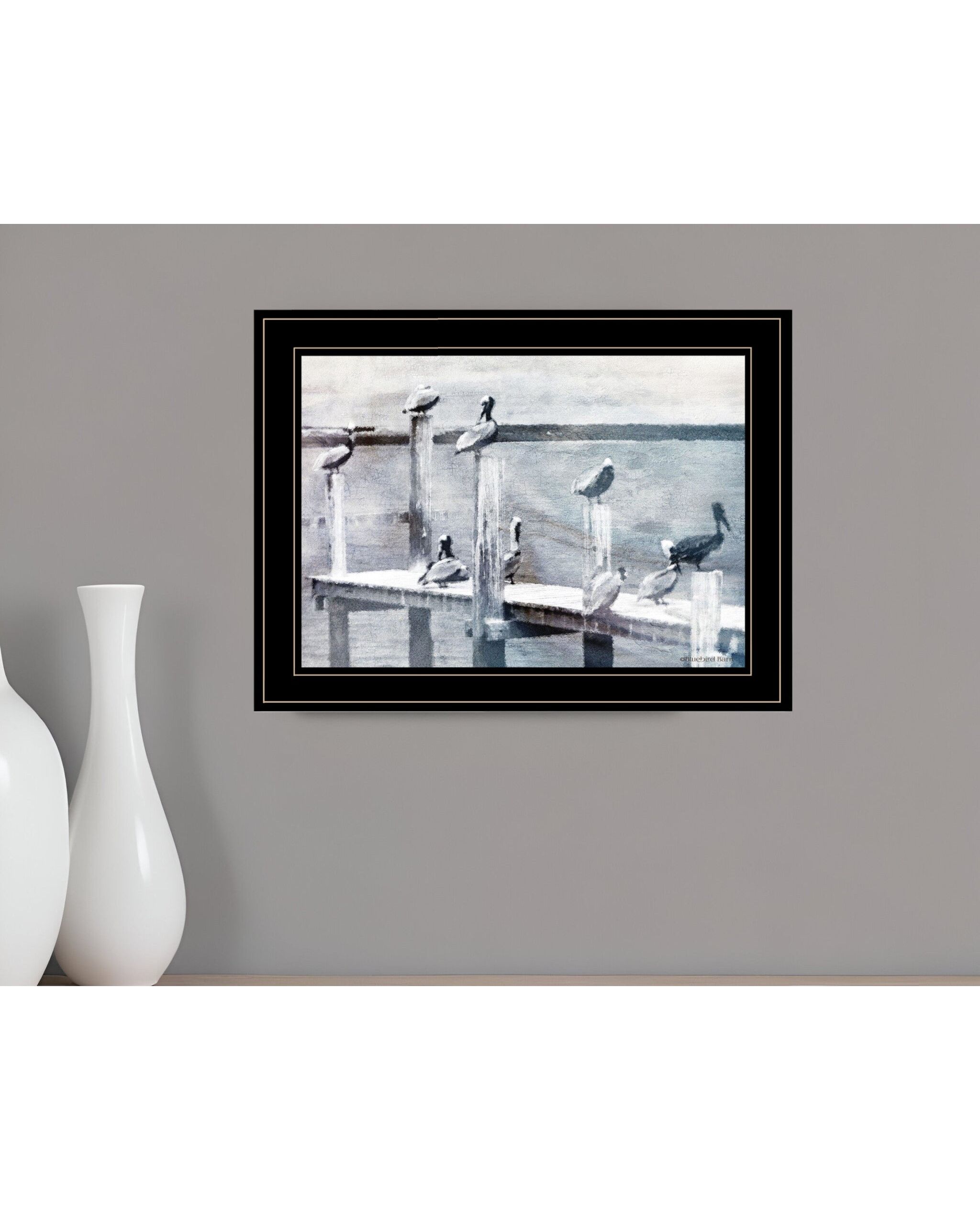 Birds on a Pier 3 Black Framed Print Kitchen Wall Art