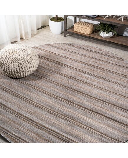 Anchor your mid-century modern, traditional, or coastal space with our jute-brown flat-weave rug. The mingled brown stripe design is practical for high-traffic areas with kids and pets. Add pattern to a living room, dining room, entry, office or bedroom with this easy-care synthetic rug.