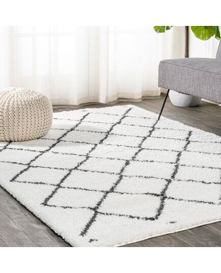 Inspired by vintage Beni Ourain Moroccan rugs, our soft and fluffy shag yarns make it easy to go barefoot. The classic Moroccan pattern has deep black diamonds on a field of ivory. Anchor your Bohemian space; add softness to a bedroom, living room, or cozy reading nook; this is a low-pile shag rug with timeless style.
