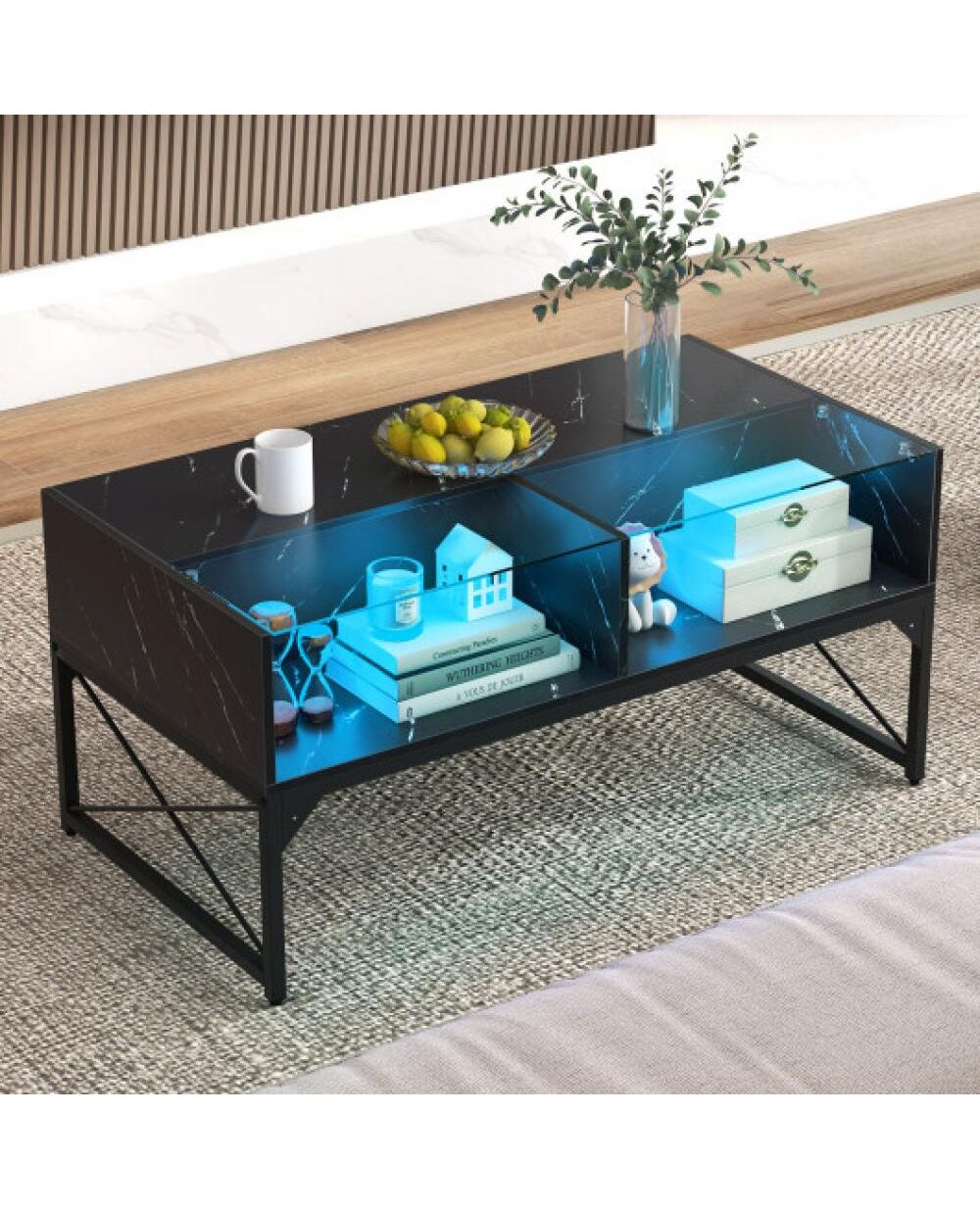 Center Table with Faux Marble and Tempered Glass Top-Black