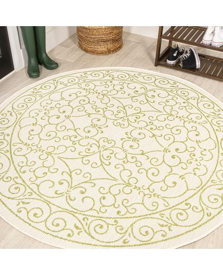 Charleston Vintage Filigree Textured Weave Indoor/Outdoor Green/Cream Round Area Rug
