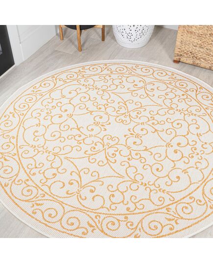 Charleston Vintage Filigree Textured Weave Indoor/Outdoor Yellow/Cream Square Area Rug