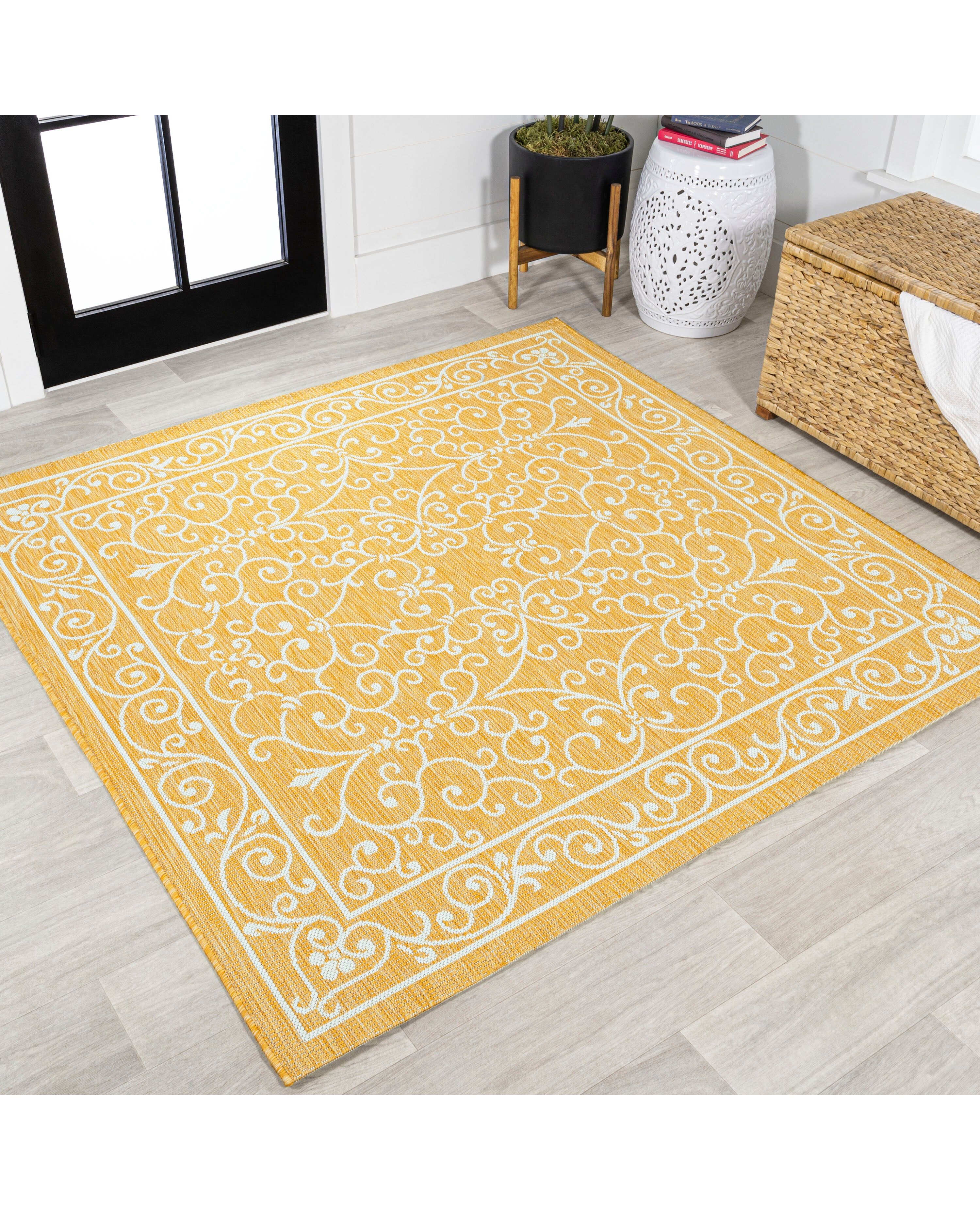 Charleston Vintage Filigree Textured Weave Indoor/Outdoor Yellow/Cream Square Area Rug