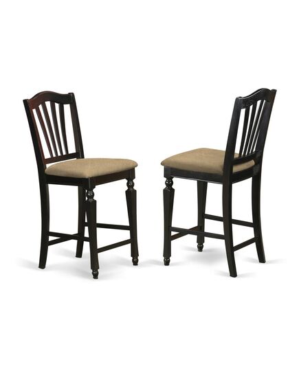 Chelsea Stools with upholstered seat, 24" seat height in Black Finish, Set of 2