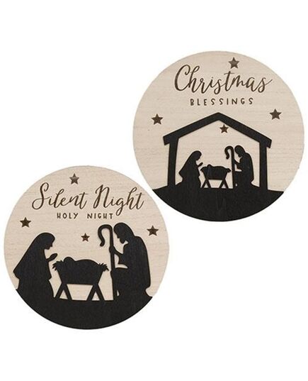 Christmas Blessing Silhouette Round Sign 2 Asstd.