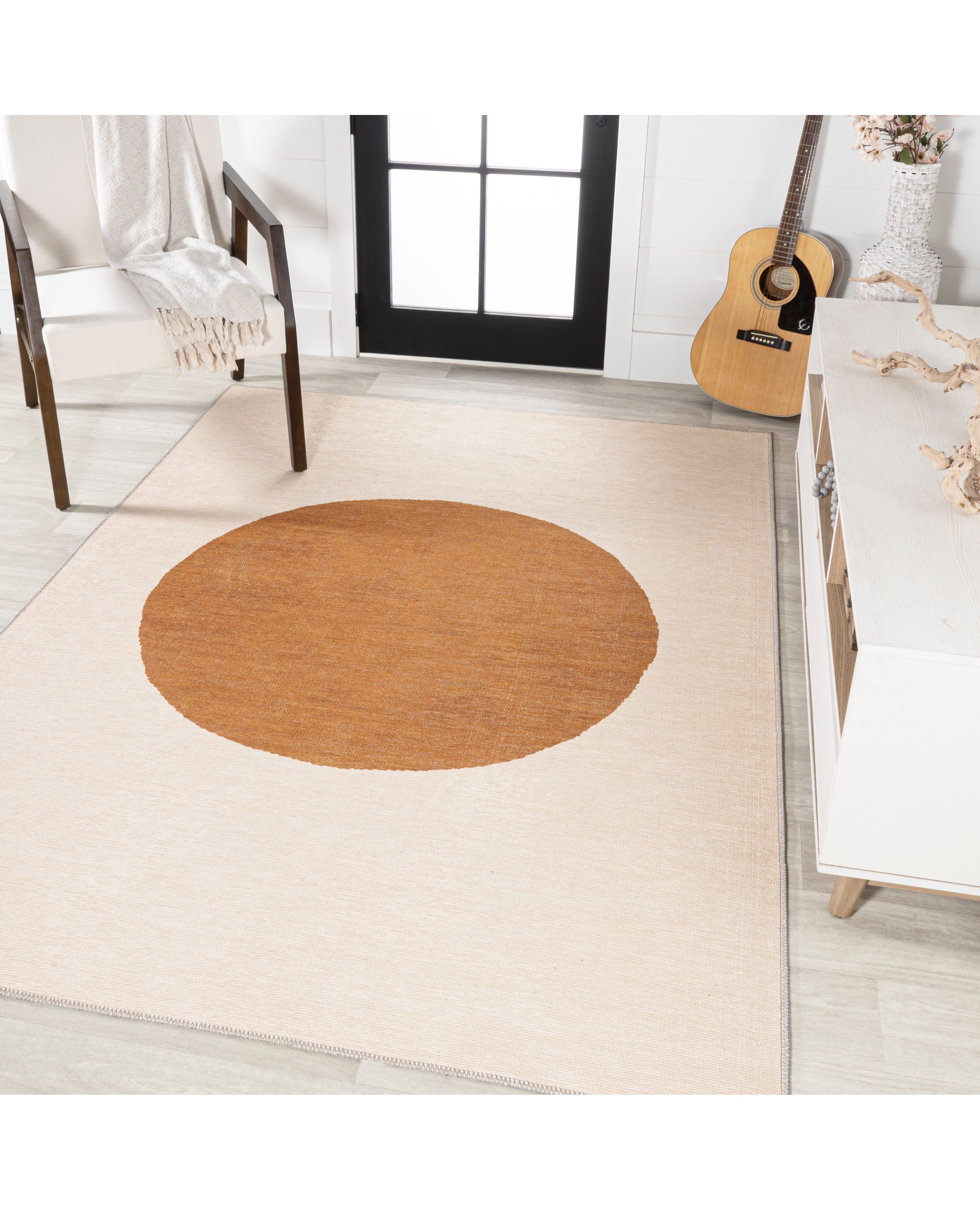 Cirkel Minimalist Geometric Dot Machine-Washable Cream/Rust Area Rug