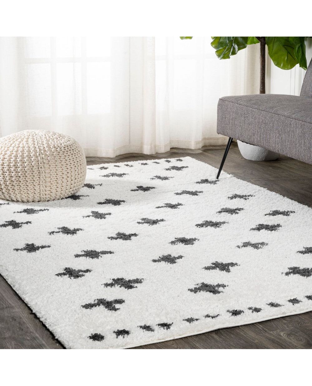 Inspired by vintage Moroccan rugs, our modern geometric rug has a soft, low shag pile. The all-over cross pattern is woven in black on an ivory background; our tribal-inspired design recalls traditional handwoven rugs. Add some Bohemian style to your living room, bedroom, or reading nook with this easy-care rug.