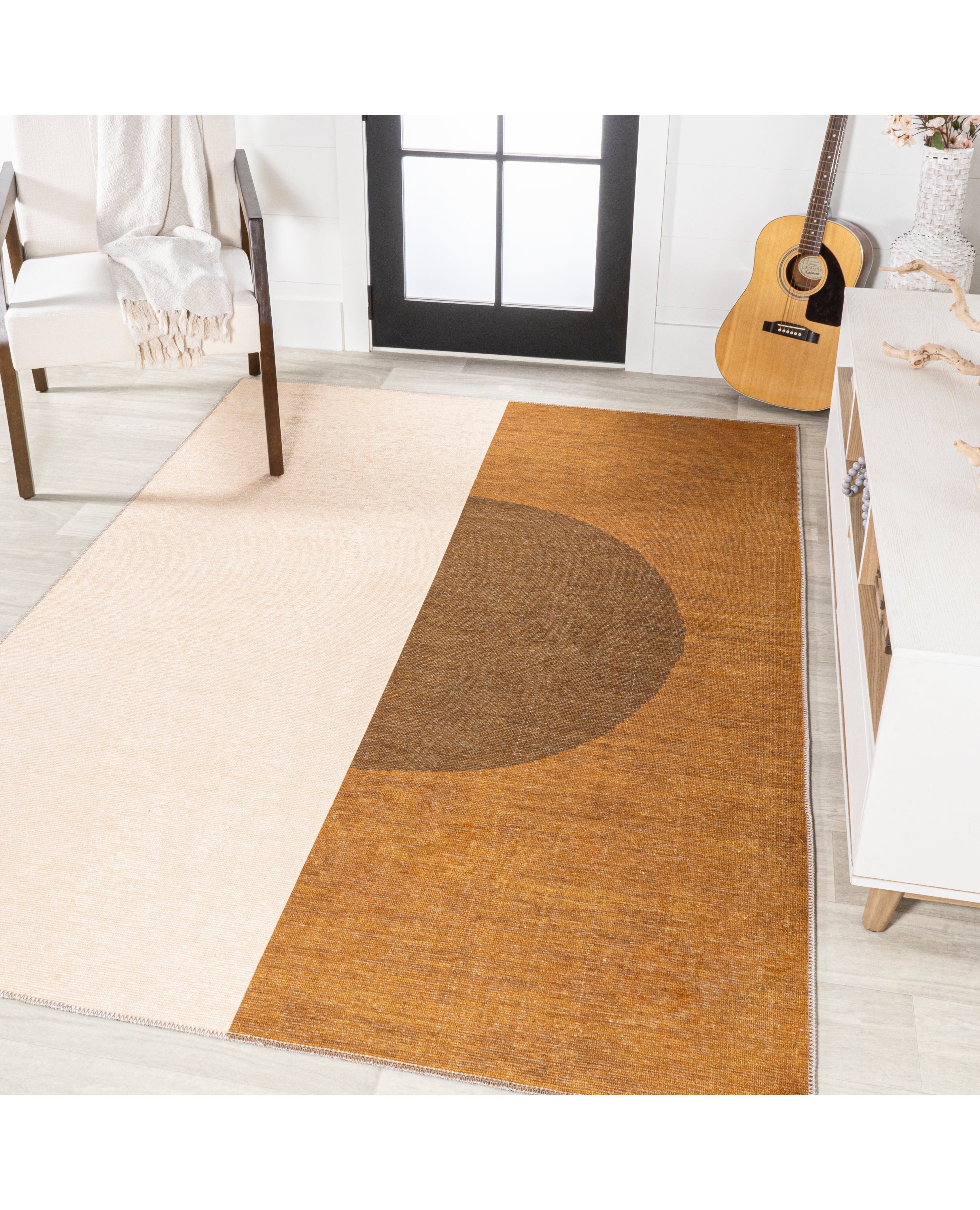Demie Minimalist Graphic Circle Machine-Washable Rust/Cream Area Rug