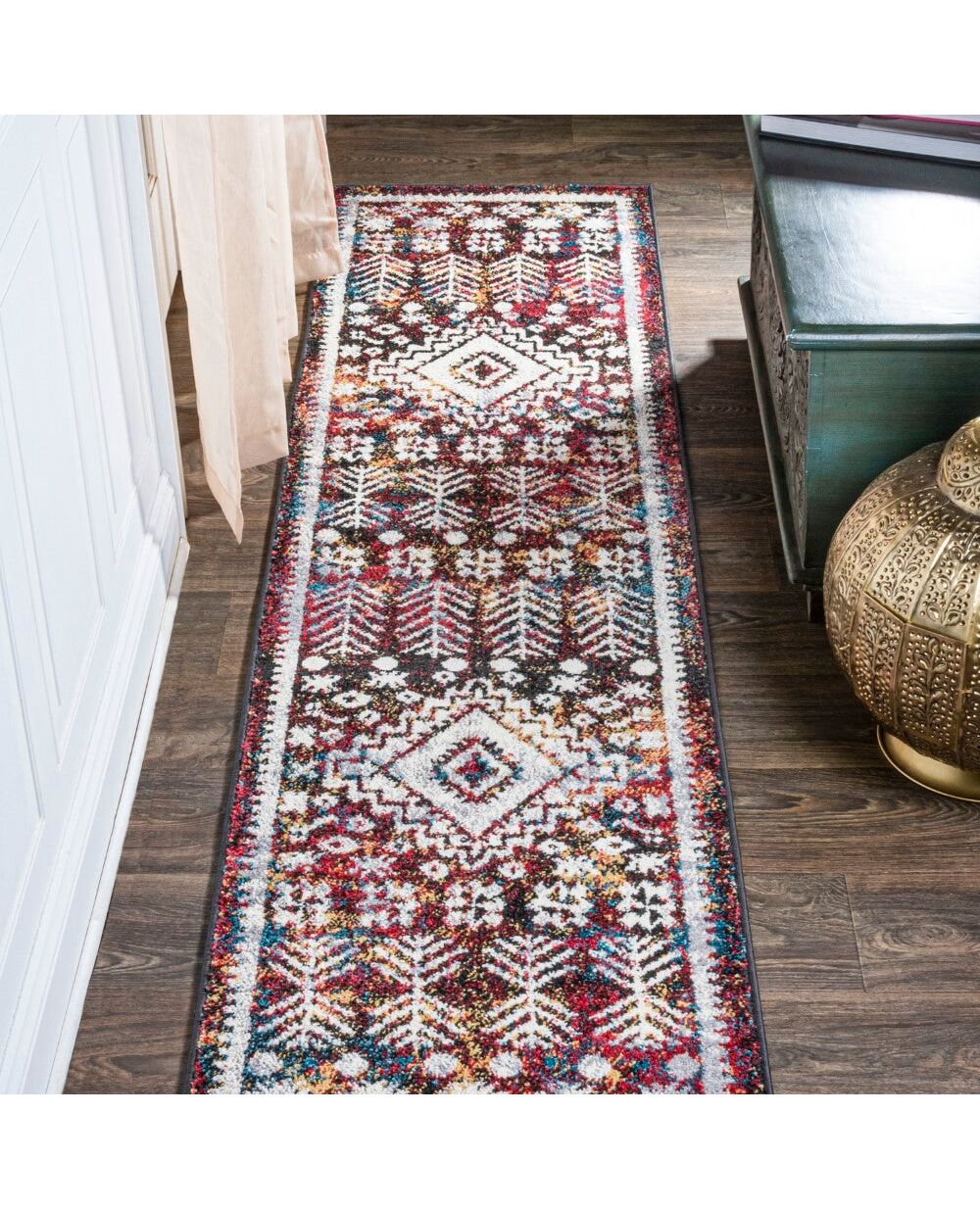 Inspired by vintage tribal Kilim rugs, our easy-care rug has a soft, low pile. The charcoal and ivory pattern features diamonds and ornate geometric shapes woven with colorful accents for a distressed look. Anchor your modern Bohemian space; add softness to a bedroom, living room, dining room, kitchen or entry with this durable, family-friendly rug.