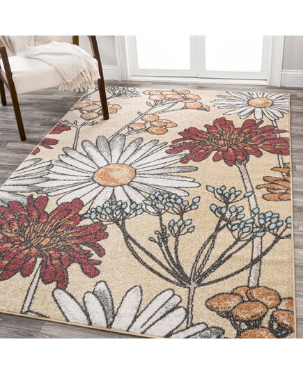 Layer on the cottage garden style with this lively rug's all-over floral design. The graphic wildflower pattern gives vintage botanical prints a modern vibe. Easy-care low pile and a busy pattern make this pet-friendly rug perfect for a bedroom, living room, kitchen, or dining area.