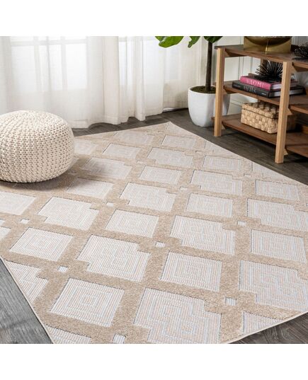 Duwun High-Low Pile Ogee Trellis Tone-on-Tone Indoor/Outdoor Area Rug