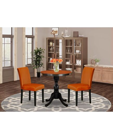 East West Furniture 3-Piece Dining Table Set Consist of Wood Table and 2 Baked Bean PU Leather Dining Chairs with High Back - Black Finish