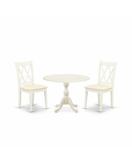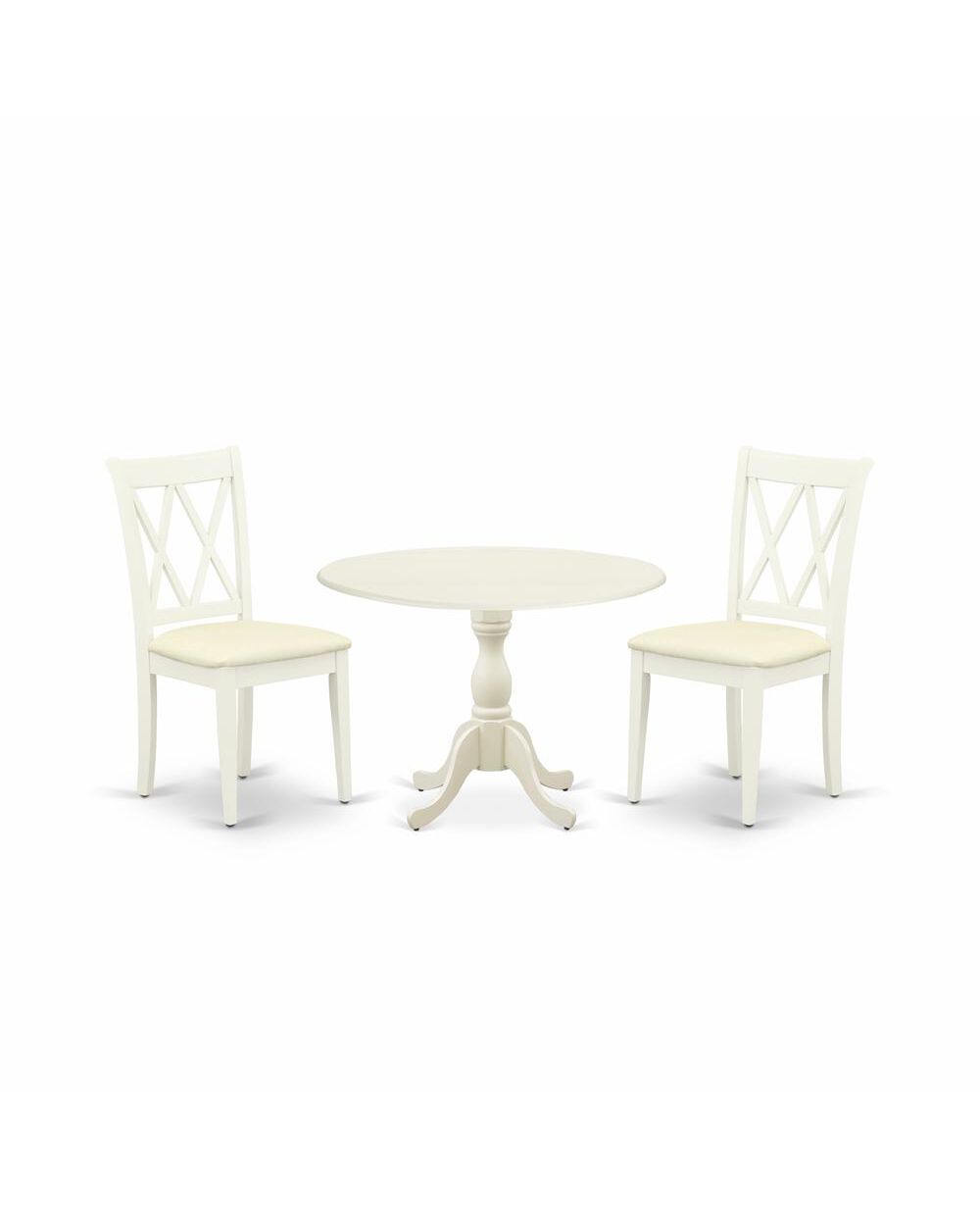 East West Furniture DMCL3-LWH-C 3 Piece Dining Room Table Set Includes 1 Drop Leaves Wood Dining Table and 2 Linen White Dinning Room Chairs with Double X-Back - Linen White Finish