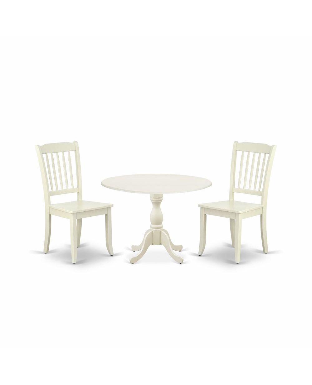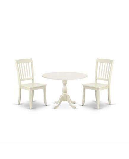 East West Furniture DMDA3-LWH-W 3 Piece Dining Table Set Consists of 1 Drop Leaves Wooden Dining Table and 2 Linen White Mid Century Modern Dining Chairs with Slatted Back - Linen White Finish