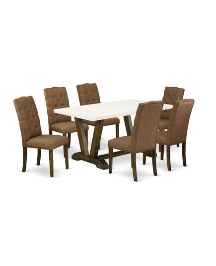 East West Furniture V726EL718-7 - 7-Piece Small Dining Table Set - 6 Dining Room Chairs and a Rectangular Dining Table Solid Wood Frame