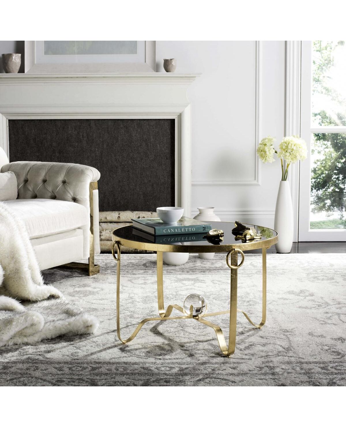 Elisha Gold Leaf Round Coffee Table - Glass Ball
