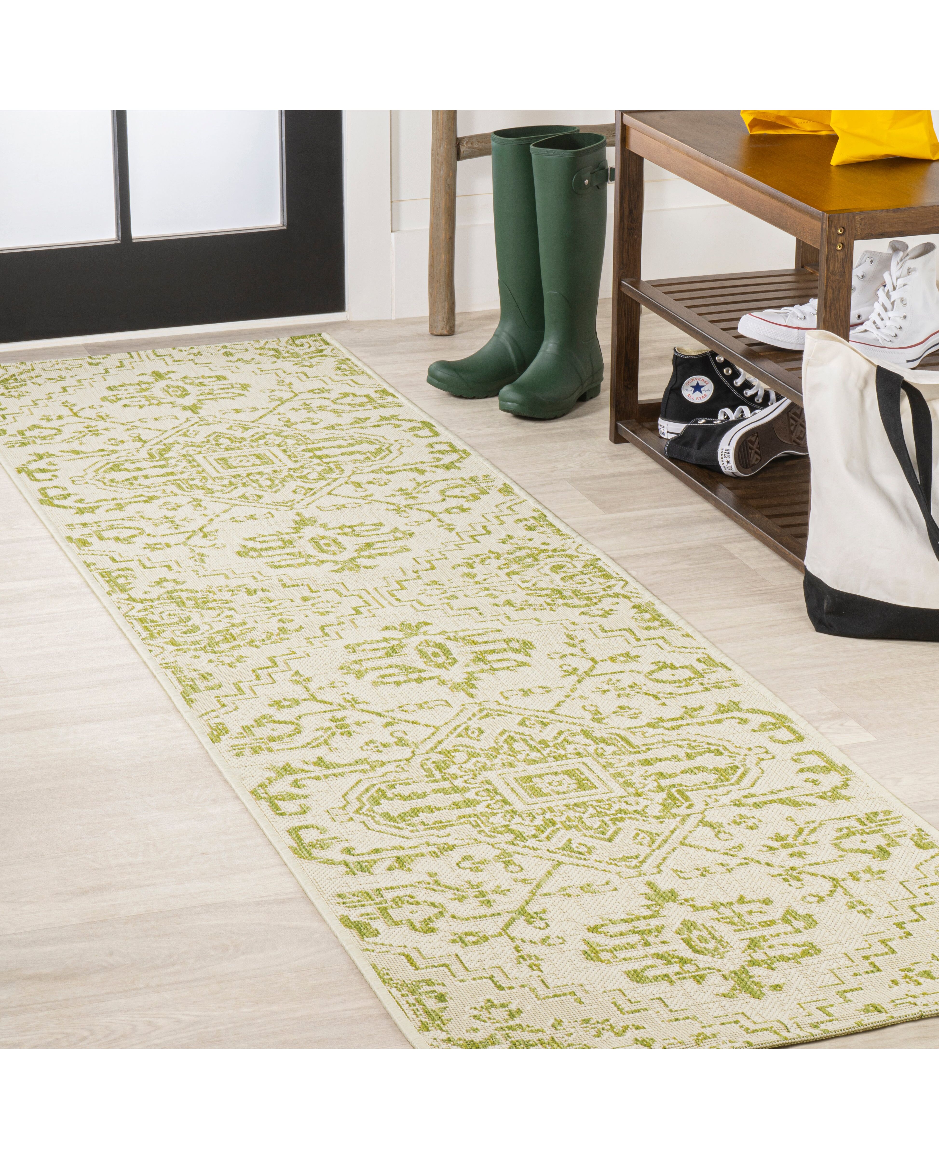 Estrella Bohemian Medallion Textured Weave Indoor/Outdoor Cream/Green Runner Rug