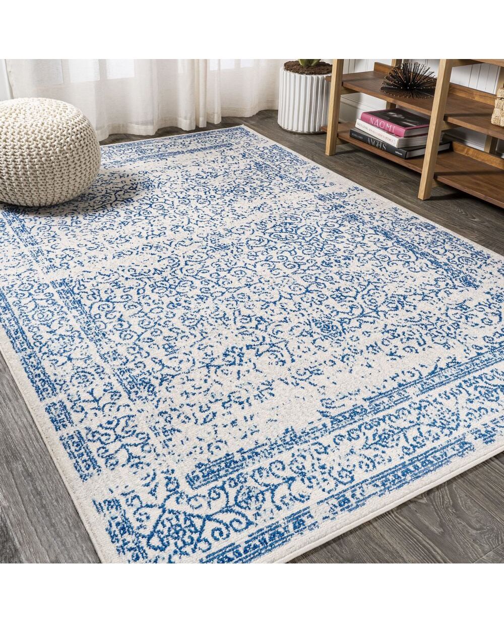 The filigree design of this rug reminds us of Mediterranean wrought iron patterns. The black and white color scheme is a Moroccan classic. Mingled threads give this easy-care rug a vintage vibe, perfect for a living room, hallway, entry, bedroom or dining room.