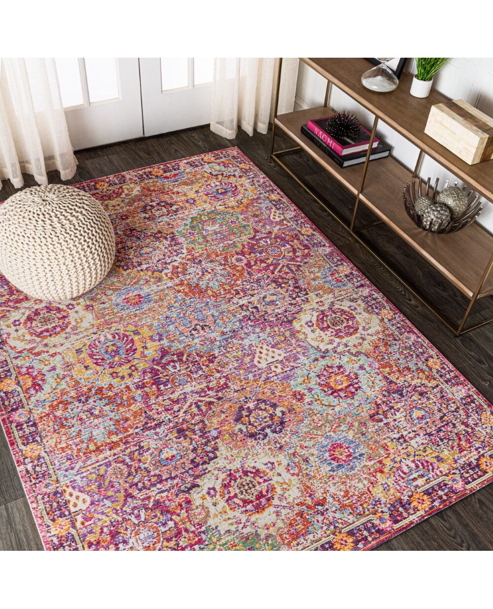 Layer on the Boho style with this colorful rug's all-over medallion design. Mingled fuchsia and burgundy with a faded effect give this rug a vintage, flea-market vibe. It's the perfect start to a vibrant color scheme in a bedroom, living room, entry, or dining area.
