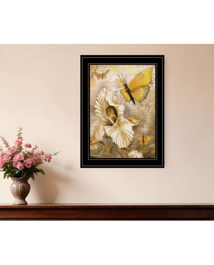 Flowers and Butterflies I 3 Black Framed Print Wall Art