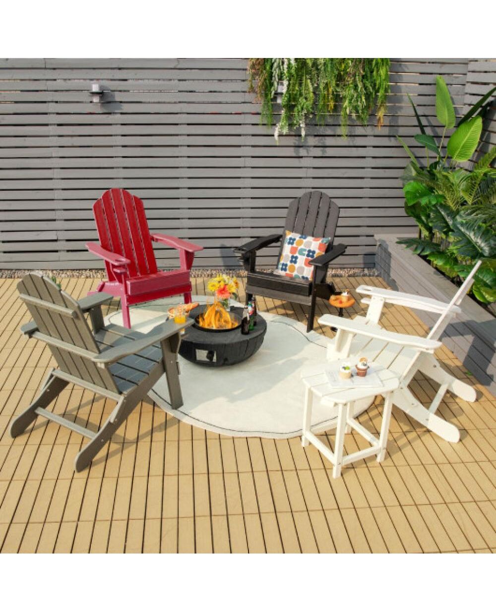 Foldable Weather Resistant Patio Chair with Built-in Cup Holder-Red