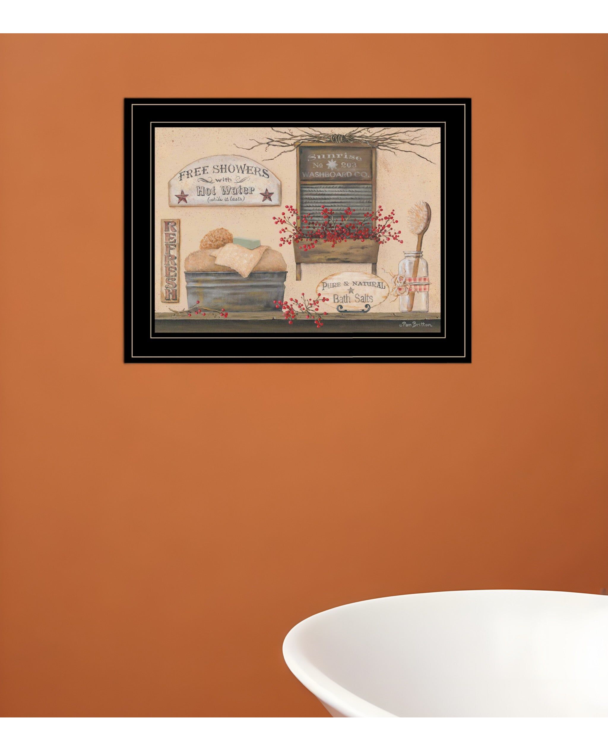 Free Showers 3 Black Framed Print Bathroom Wall Art