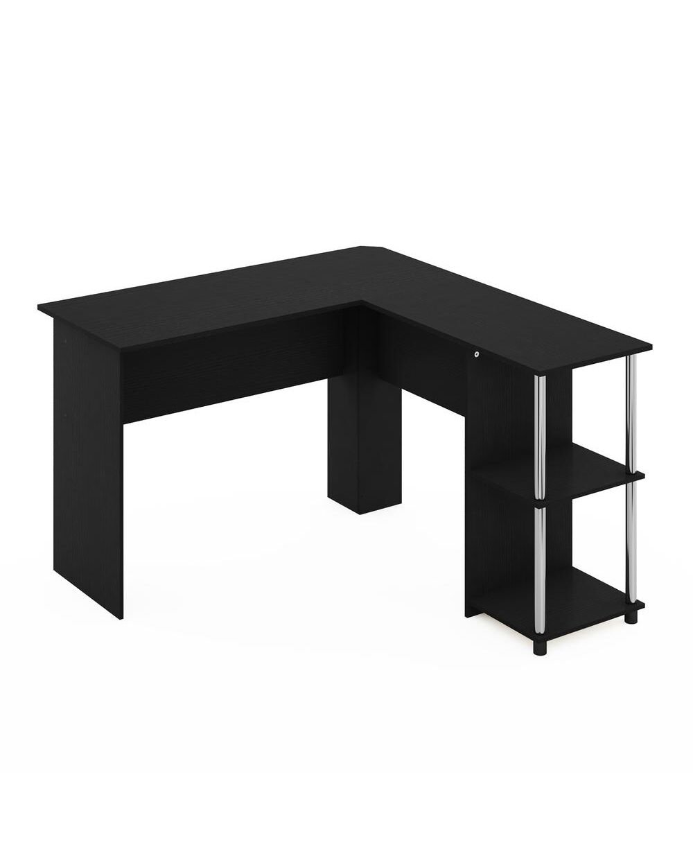 Furinno L-Shape Desk with Stainless Steel Tubes, Americano