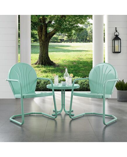Griffith 3Pc Outdoor Metal Armchair Set Aqua Gloss - Side Table & 2 Chairs