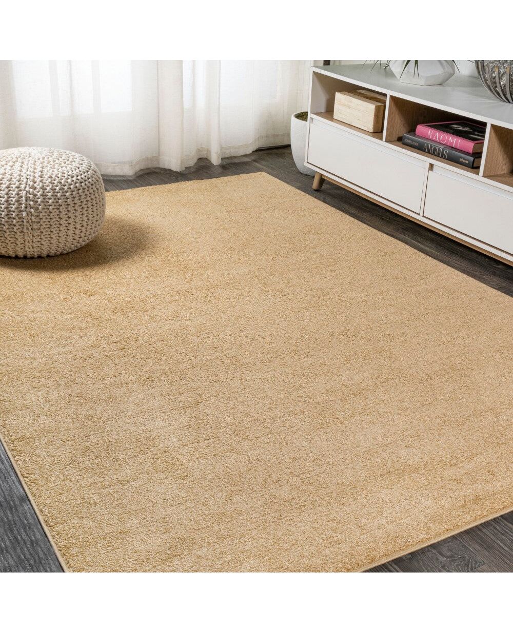 Saturated color gives this solid area rug a modern, clean look that's ideal for a living room, family room, dining room, bedroom, or kids' rooms. Soft, durable synthetic fibers are an easy maintenance solution for homes with kids and pets. With several colors to choose from, this rug makes an ideal centerpiece for a mid-century, contemporary, coastal , farmhouse or minimalist interior.