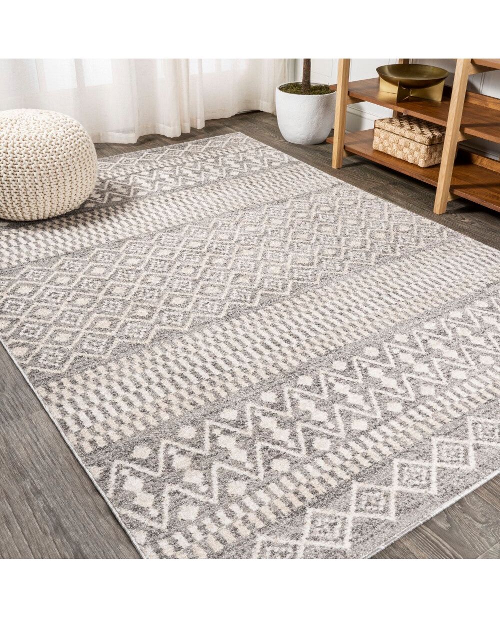 Inspired by vintage Moroccan tribal rugs, our modern version is ideal for a living room, bedroom or entry. Berber-inspired geometric designs are woven in ivory on a field of gray; the mingled threads recall traditional handwoven rugs. Add some Bohemian style to your home with this easy-care rug.