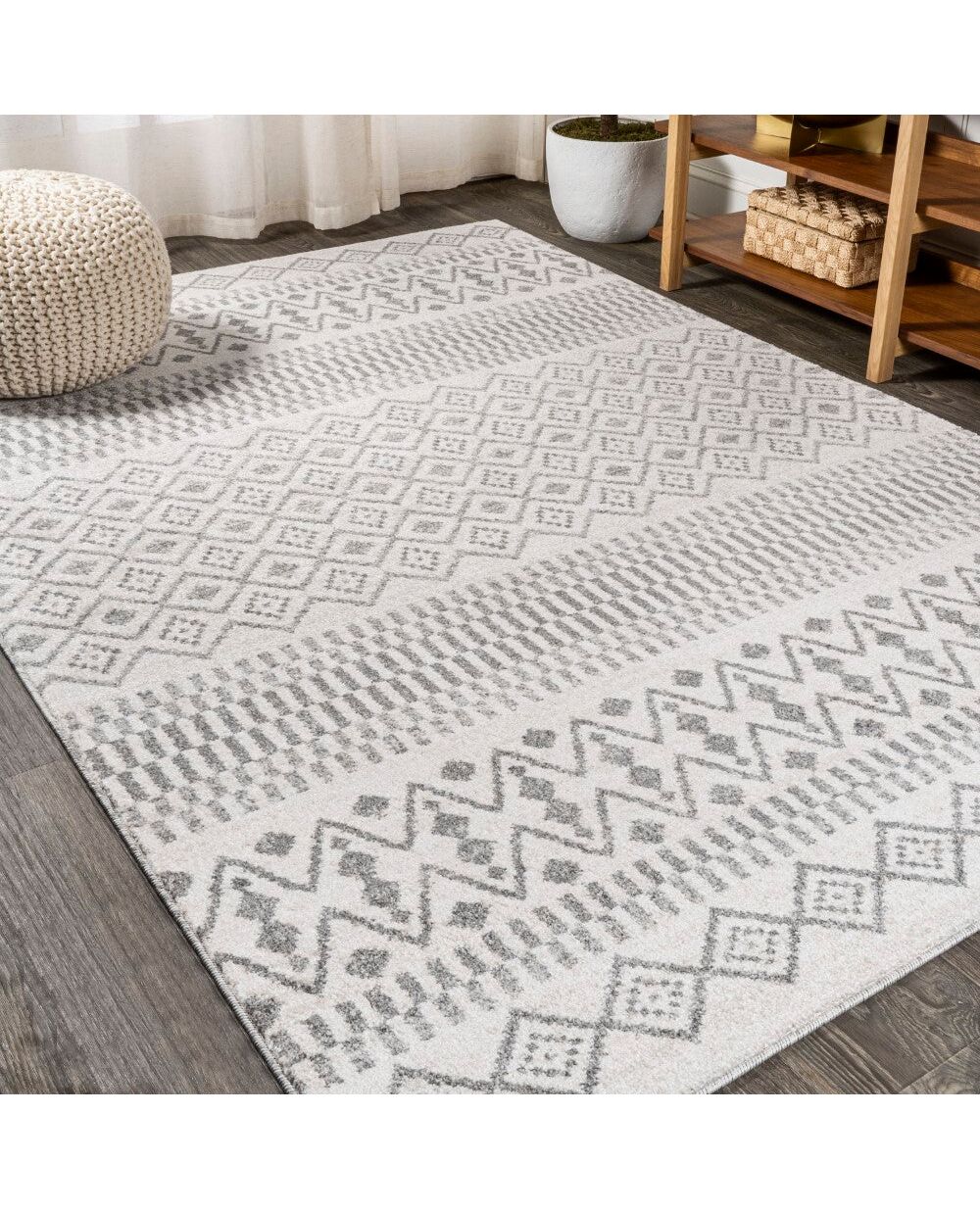 Inspired by vintage Moroccan tribal rugs, our modern version is ideal for a living room, bedroom or entry. Berber-inspired geometric designs are woven in ivory on a field of gray; the mingled threads recall traditional handwoven rugs. Add some Bohemian style to your home with this easy-care rug.