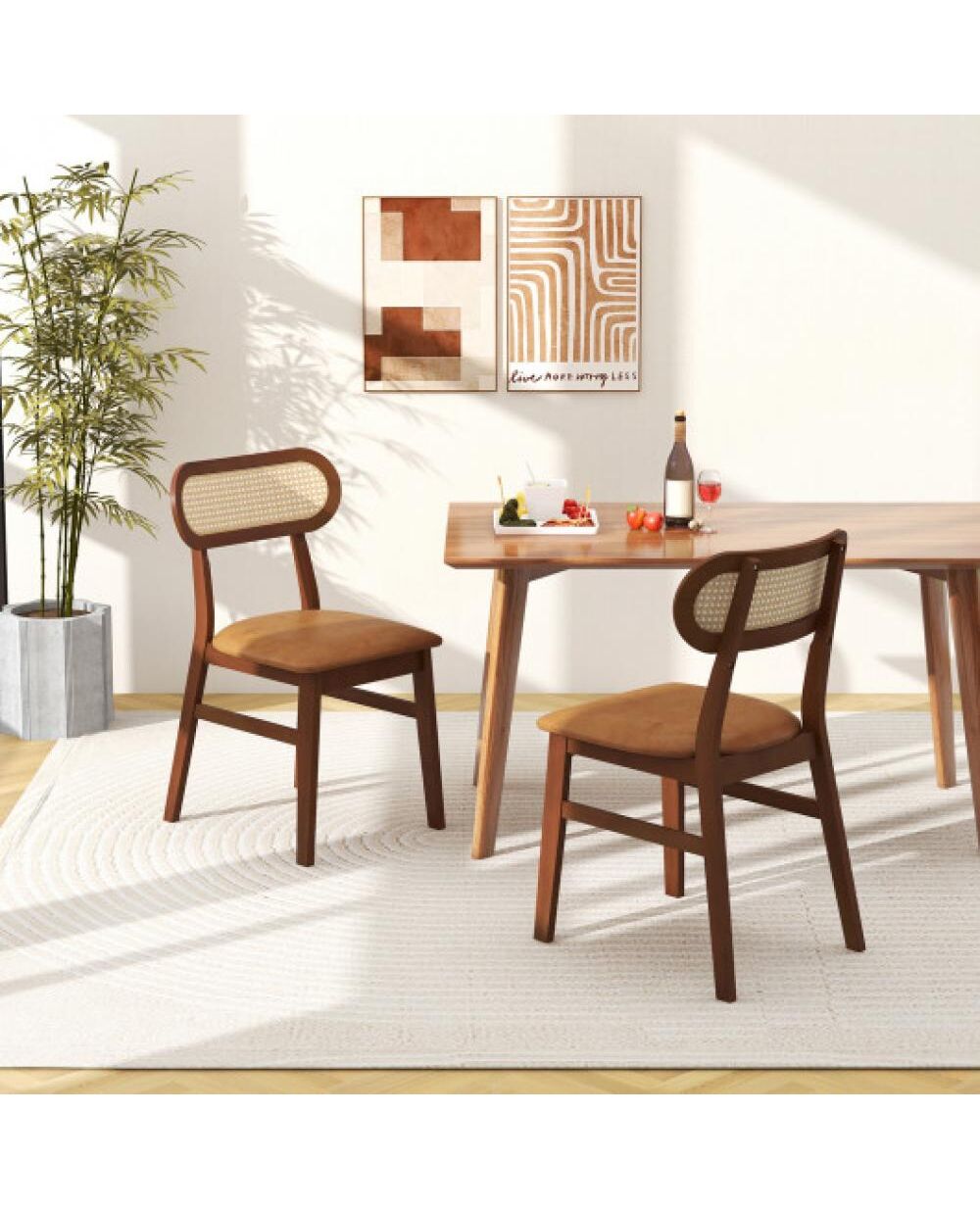 Indoor Mid Century Wood Dining Chairs Set of 2 for Dining Room-Coffee