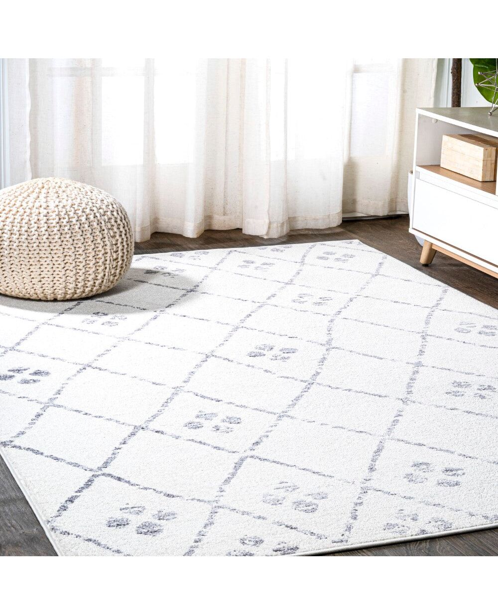 Inspired by vintage Beni Ourain Moroccan rugs, our easy-care rug has a family-friendly short pile. The classic Moroccan pattern features geometric gray diamonds in a trellis pattern, on a field of ivory. Anchor your Bohemian space; add minimalist flair to a bedroom, living room, dining room, kitchen or entry; this is a durable rug with timeless style.