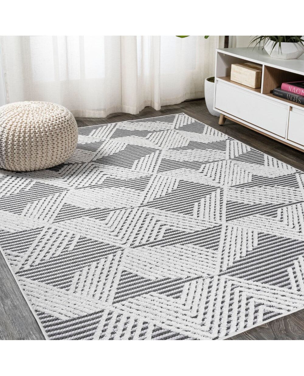 Inspired by Art Deco design, our jazzy geometric rug is power-loomed with a short pile. The all-over pattern is woven in a modern color palette. Add some graphic mid-century punch to your living room, dining room, entry, or bedroom with this easy-care rug.
