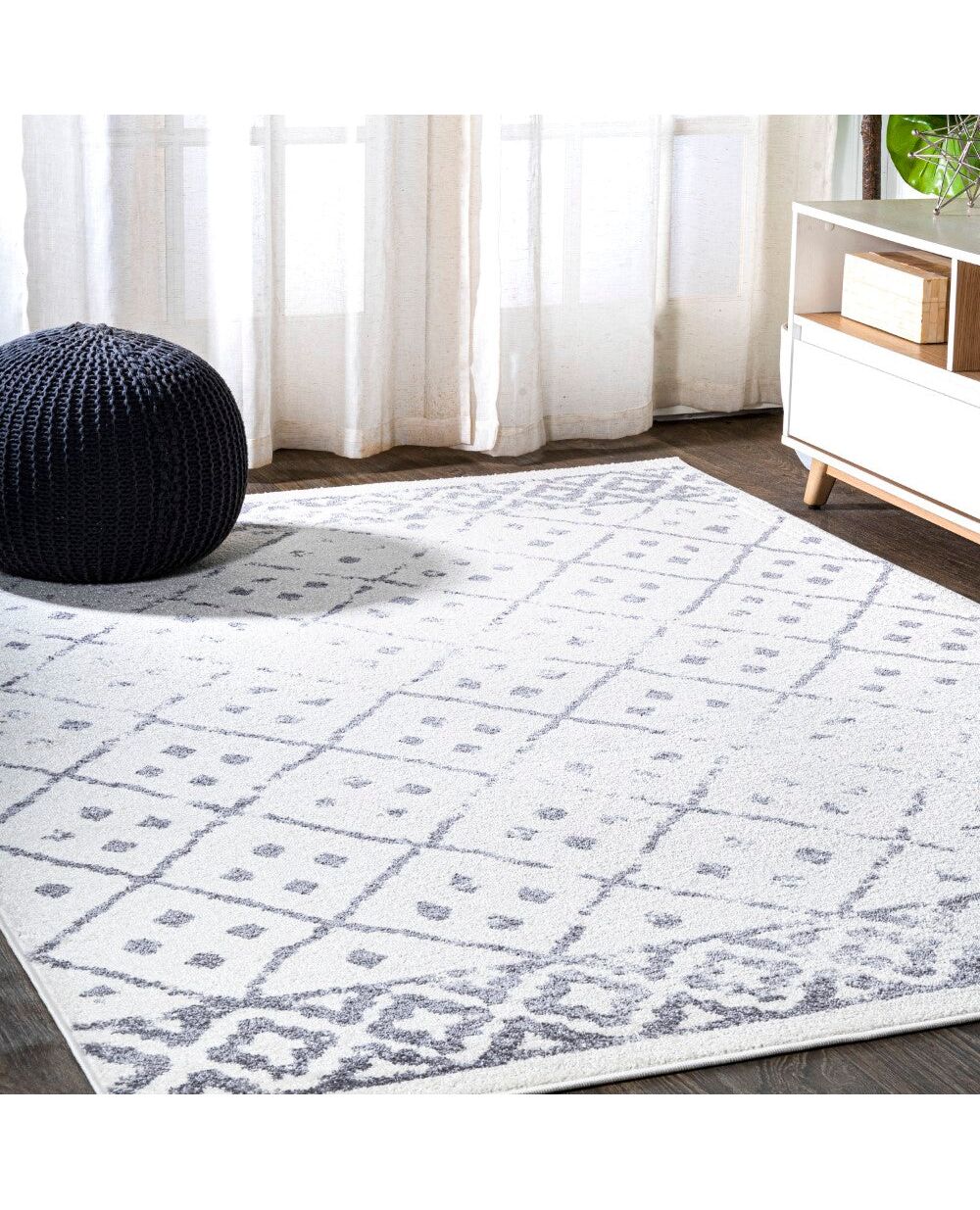 Inspired by vintage Beni Ourain Moroccan rugs, our easy-care rug has a family-friendly short pile. The classic geometric Moroccan pattern features a gray diamond trellis on ivory, with a border at each end. Anchor your Bohemian space; add minimalist flair to a bedroom, living room, dining room, kitchen or entry; this is a durable rug with timeless style.