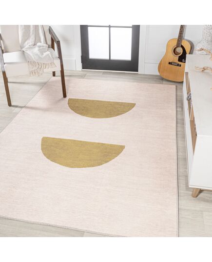 Luola Minimalist Geometric Machine-Washable Cream/Yellow Area Rug